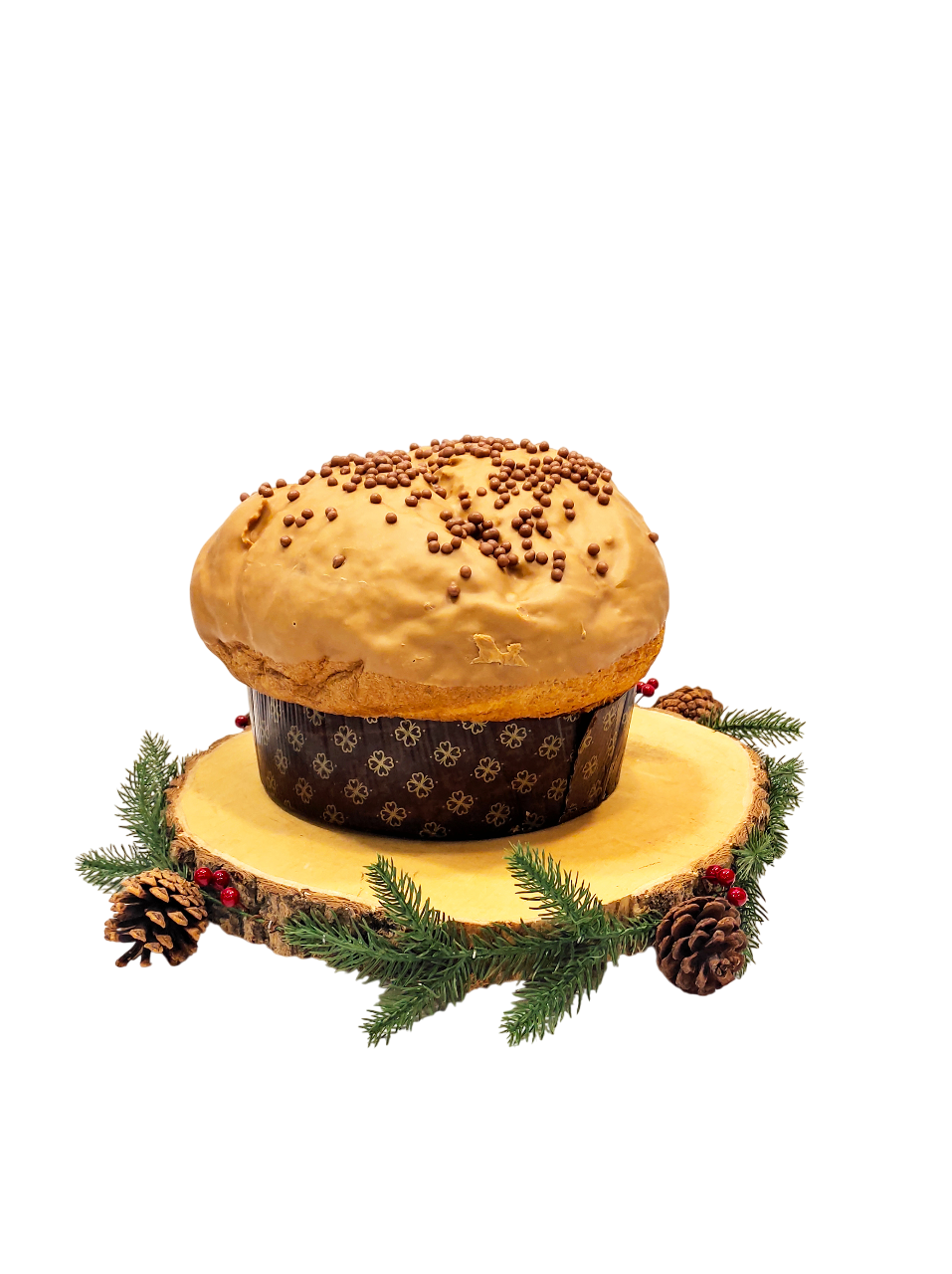 Che dire? E’ andato tantissimo come gelato questa estate che ci è venuta voglia di proporlo anche quest’inverno in versione Panettone. Impasto senza lattosio, burro senza latttosio rigorosamente italiano, una glassa di cioccolato “GOLD”, cerealini ricoperti al cioccolato al latte, una crema spalmabile realizzata da noi a base di cioccolato bianco e caramello al sale marino. Sempre in pratici sac a poch per guarnire ogni fetta come ci piu aggrada.